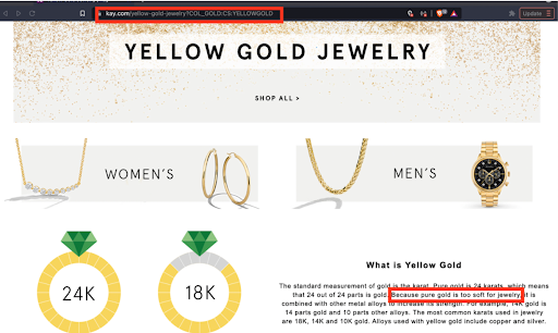Kay Jewelers, “Pure Gold Is Too Soft For Jewelry”